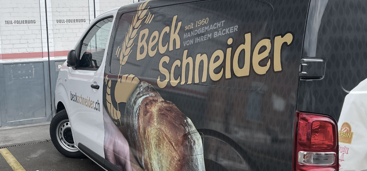 Die Familie Schneider vertraute uns ihren neuen Werbeauftritt an – und wir griffen das Look & Feel der neuen Website gekonnt auf. Aus der ikonischen Ähre im Logo entstand ein feines Hintergrundmuster, das für Wiedererkennung sorgt. Die Brote? Gross, appetitlich, verführerisch – so richtig zum Reinbeissen! Dahinter steigt das Beck-Schneider-Logo stilvoll empor und rundet das Ganze mit einem Hauch Handwerksstolz ab. So macht Werbung Lust auf frisches Brot!