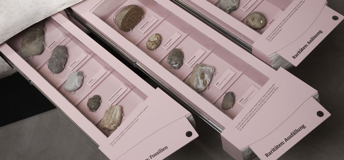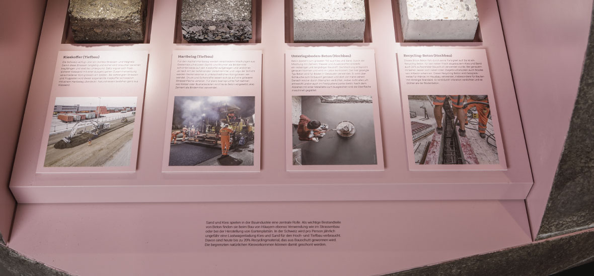 Unzählige Texte wurden von uns in verschiedensten werbetechnischen Verfahren umgesetzt. Dutzende Aluminiumteile – jedes ein Unikat – erhielten eine präzise rosarote Lackierung und wurden im Direktdruckverfahren mit Infotexten veredelt. Die Legendentexte der Exponate wurden auf weiss beschichtetem 2 mm Maschinenkarton gedruckt, passgenau zugeschnitten und direkt am Objekt platziert. Zusätzlich kamen matte Digitaldruck-Folien zum Einsatz. Die grösste Herausforderung? Ein durchgehend identischer Rosaton – perfekt abgestimmt und konstant reproduziert! Eine ausstellung die alles übertrifft, aufwändig, informativ, kreativ und einzigartig.