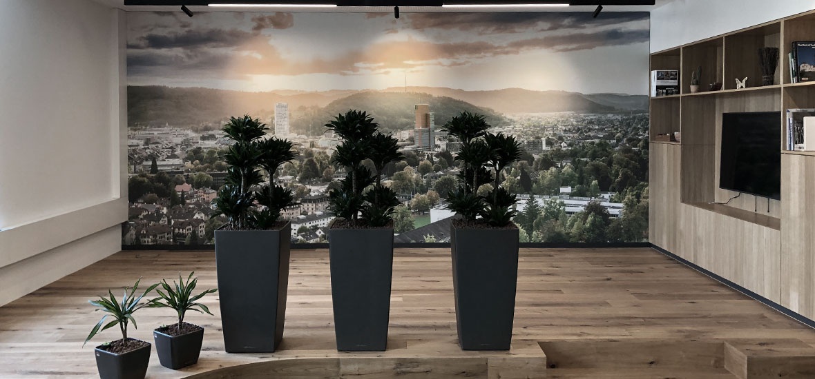 Raumdekoration trifft auf Funktion: Bedruckte Akustikplatten für stilvolle Raumgestaltung und bessere Akustik. Produziert und montiert von Naef. Sichtbar stark!